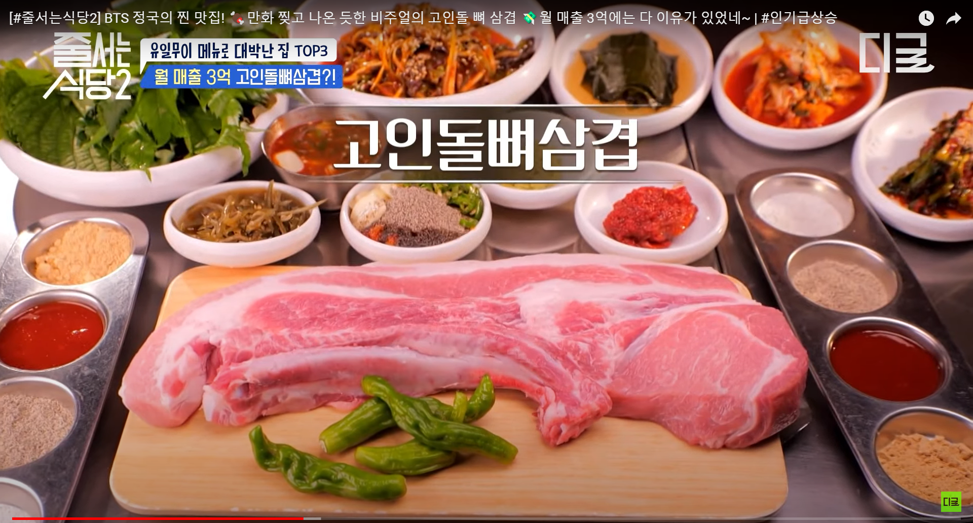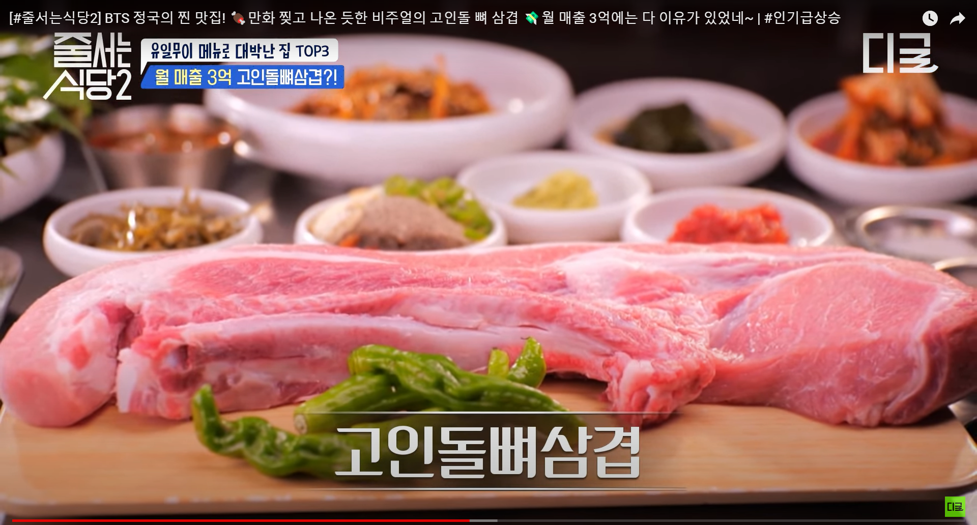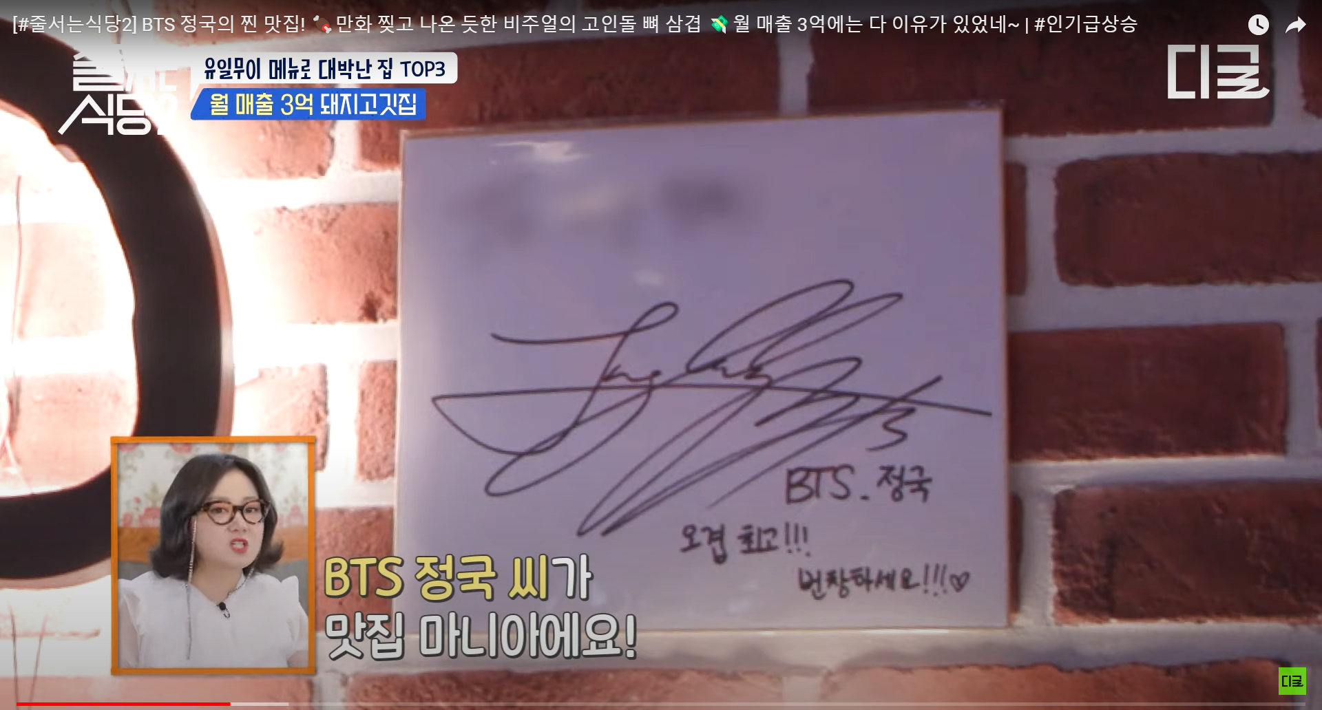 Han Haejin appeared as a guest, and there was a sign on the wall indicating that BTS's Jungkook had visited. I wondered if everyone had come to see that sign, but as I watched the broadcast, I noticed that there were also plenty of delicious-looking dishes to enjoy.