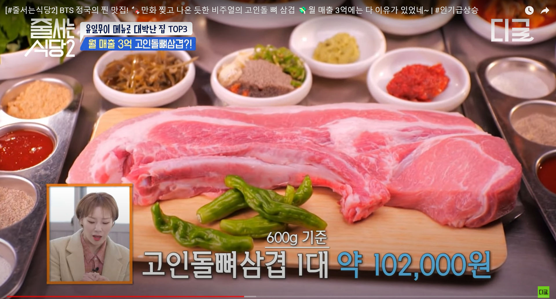 Han Haejin appeared as a guest, and there was a sign on the wall indicating that BTS's Jungkook had visited. I wondered if everyone had come to see that sign, but as I watched the broadcast, I noticed that there were also plenty of delicious-looking dishes to enjoy.