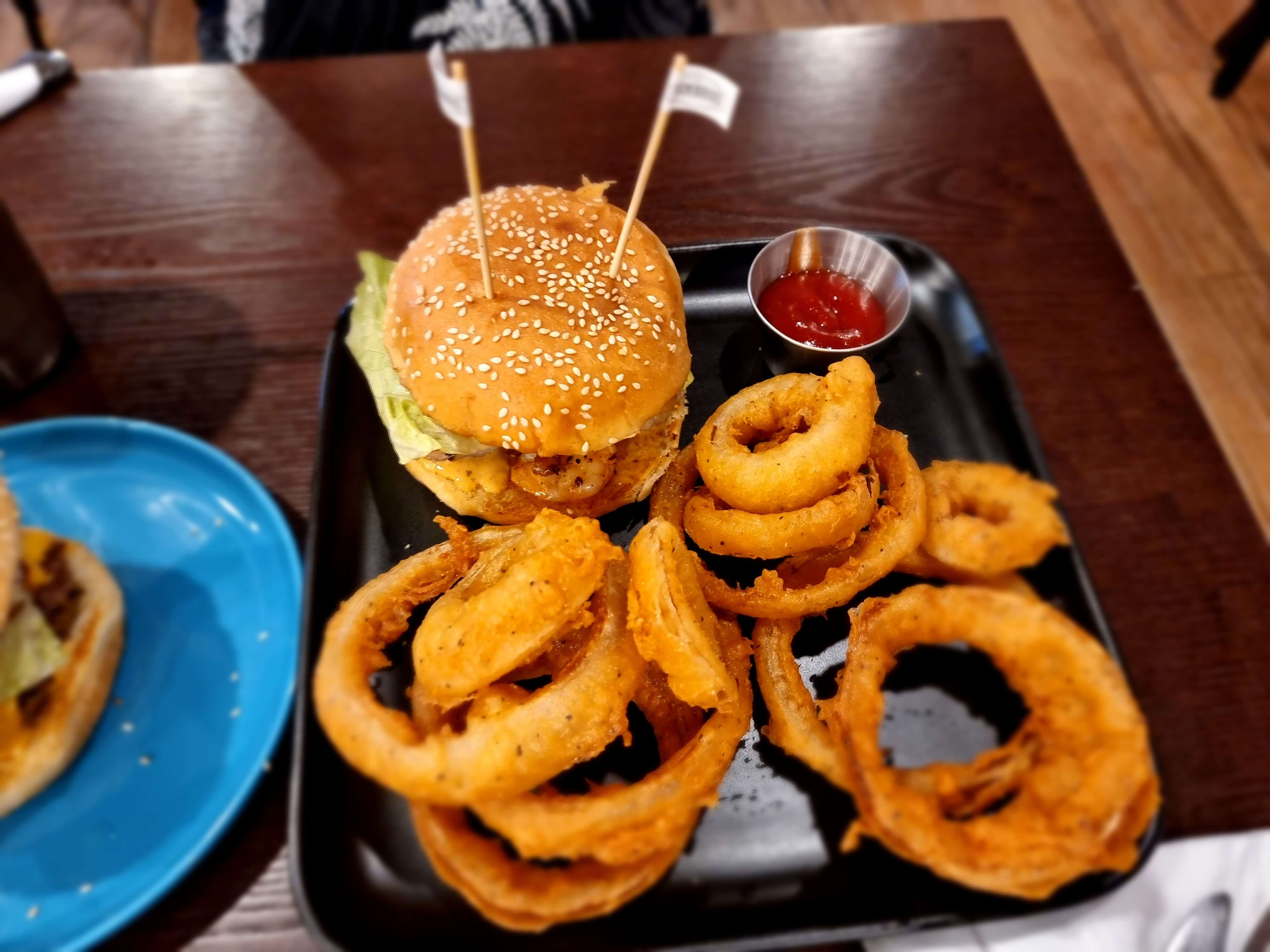 메뉴판을 보니 버거가 많아서 어떤 것을 주문하는데 좋을지 몰랐다. 몇 번을 물어보다가 결국 추천해 달라고 했더니, 홀 매니저님은 Eggsplosion bugger 계란반숙 버거를 추천하였다. 계란반숙이라.. 조금은 특이한 버거라 반숙계란이 흘러내리지 않도록 버거를 고정해 왔다. 그리고 새우버거를 시켰다. 우리나라에서는 와인새우를 넣어주지만 여기는 진짜 통새우를 넣어서 만들었다. 새우의 고소함이 나의 코를 자극했다.