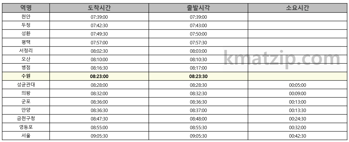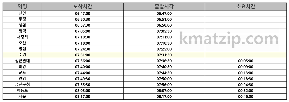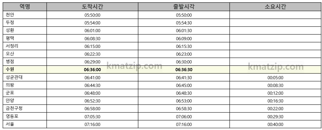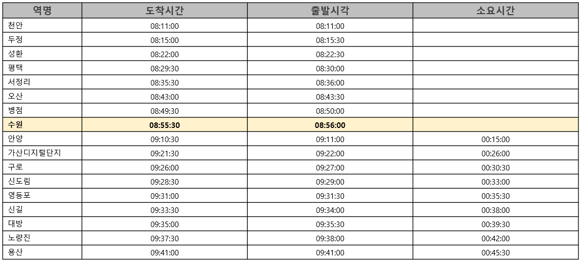 1) 서울급행 시간표