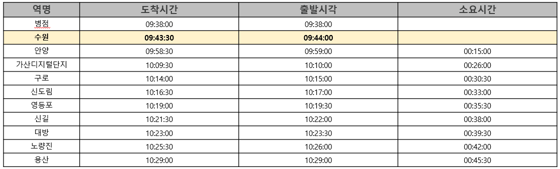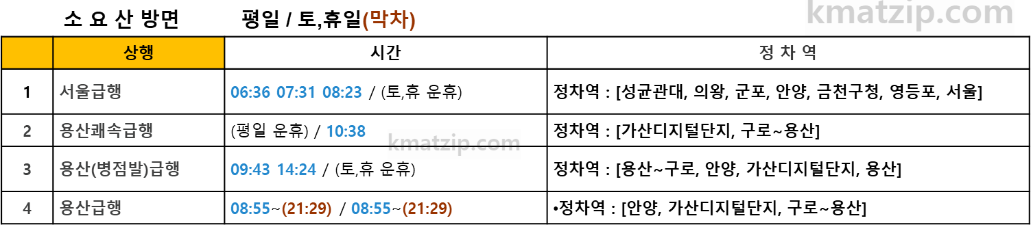 2) 용산쾌급행 시간표