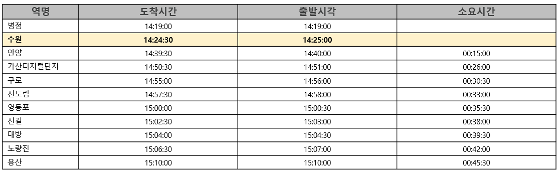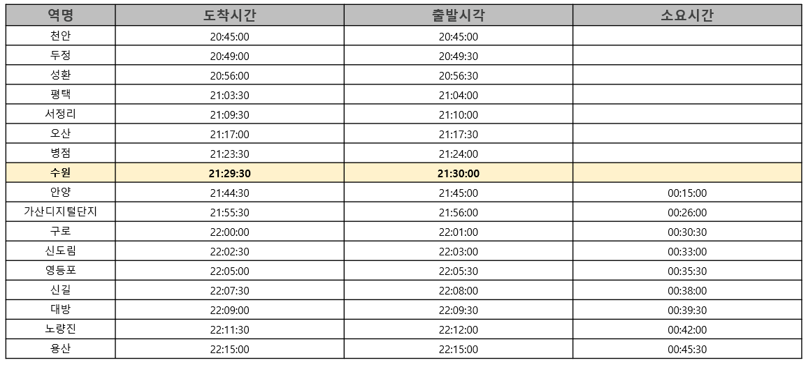 1) 서울급행 시간표