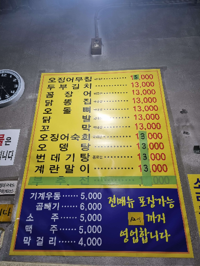 들어오신 손님 테이블을 확인해 보았다. 술안주의 음식들을 주문하고 있는 것을 볼 수 있었다. 실내포차라라는 간판 때문인지도 모르겠지만, 손님들 테이블 위에는 유독 술잔들이 올라가 있었다. 유독 눈에 보이는 메뉴가 파란 바탕에 하얀색 텍스트로 만들어진 기계우동이었다. 다른 메뉴는 1만 원이 넘는 가격에 준비되어 있다고 하면 기계우동은 5000원이었다. 일단 필자는 곱빼기는 많아 보여 우동을 주문했다.
