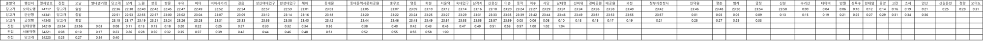 서울 지하철 4호선 운행 노선과 운행시간표 정보입니다.