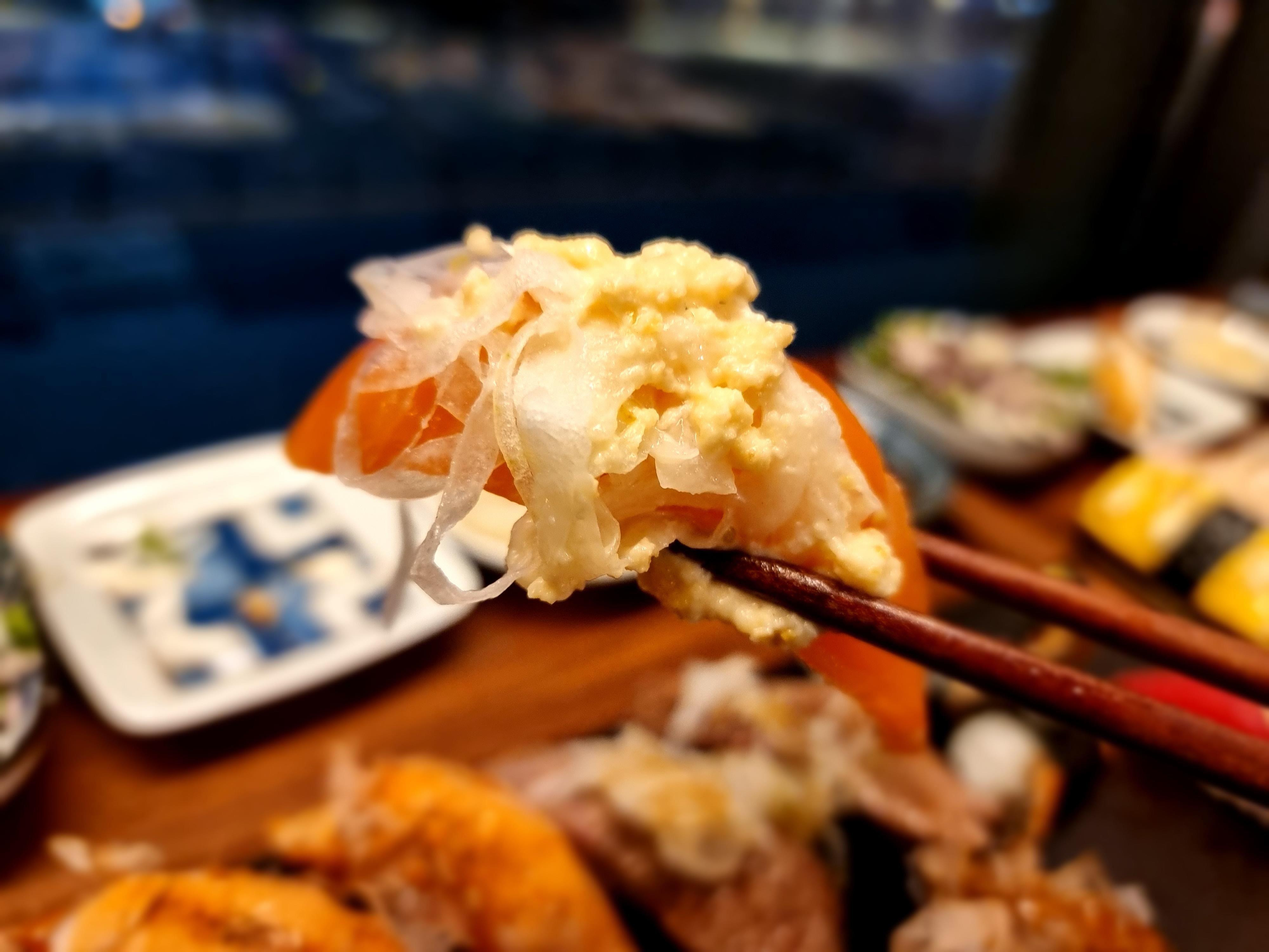 참치/숙성회(광어 or 계절생선) /연어/대포한치/소고기/새우마요/간장새우/튀김가지/계란마요 세트와 미니 우동이 준비되어 나온다. 우동세트도 적당한 간장소스로 베이스가 되어있었다. 초밥들은 상태가 싱싱했고 두께도 어느정도 두께가 있어서 먹는내내 씹는 맛도 일품이었다.