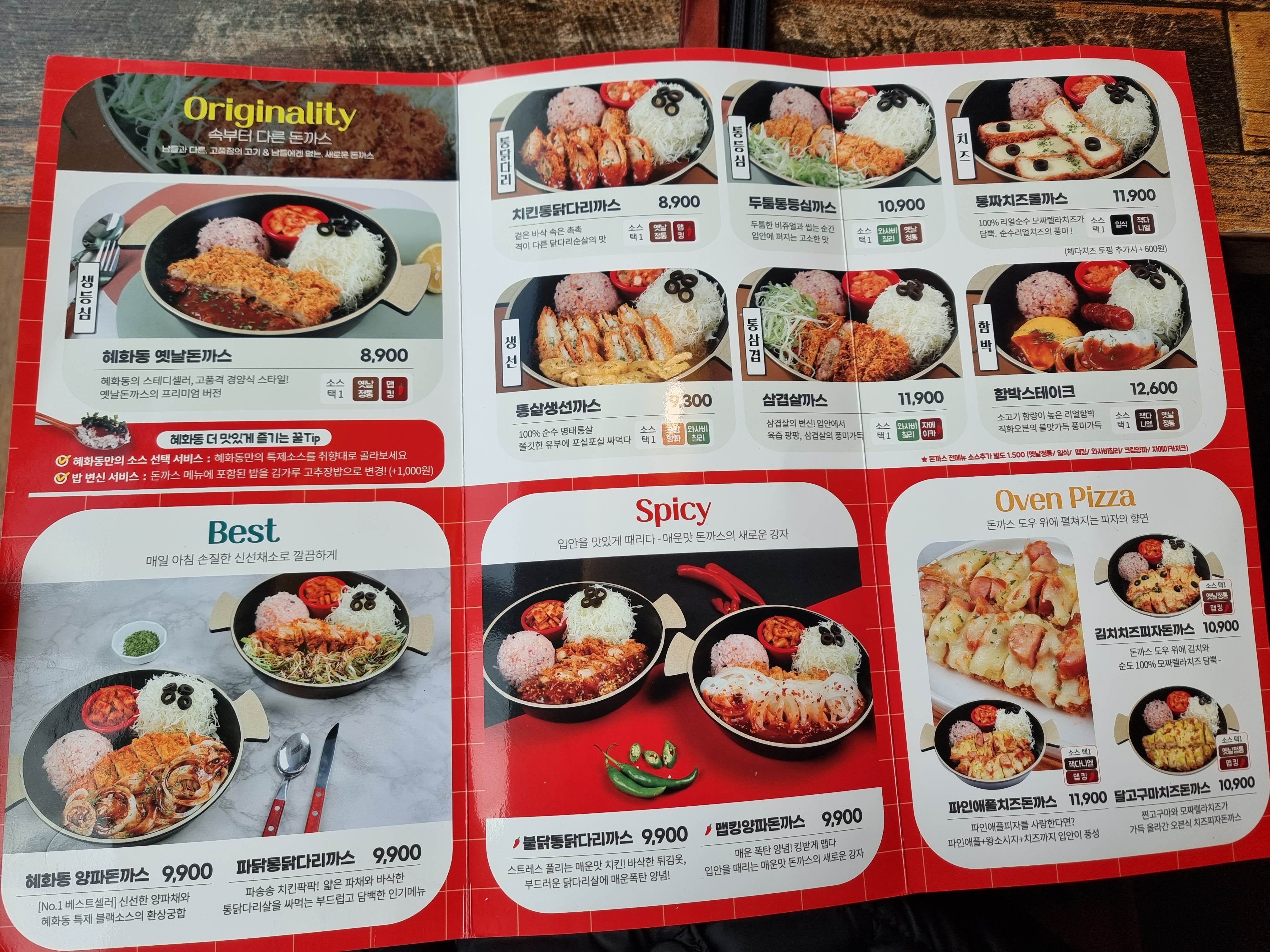 오늘은 저희 동네에서 가끔 돈까스 먹으러 가는 영등포 당산 파닭통닭다리까스 맛집 혜화동 돈까스를 소개하려고 합니다. 맛있다고 하면 맛있고 맛없다고 해도 맛있는 돈까스 맛집이죠. 짜장면집 2층에 자리 잡고 있는 혜회동 돈까스 체인점이라 많은 분들이 소개를 하고 있긴 하더라고요. 하지만 이 돈까스 집의 맛있는 돈까스 는 파닭 통닭다리가스죠. 퍽퍽하지도 않고 적당히 부드러워 한입 베어 먹을 때마다 잘 튀긴 뒤김의 아삭함이 통닭살과 함께 먹게 되면 푸짐함을 느낄 수 있었어서 좋았어요.