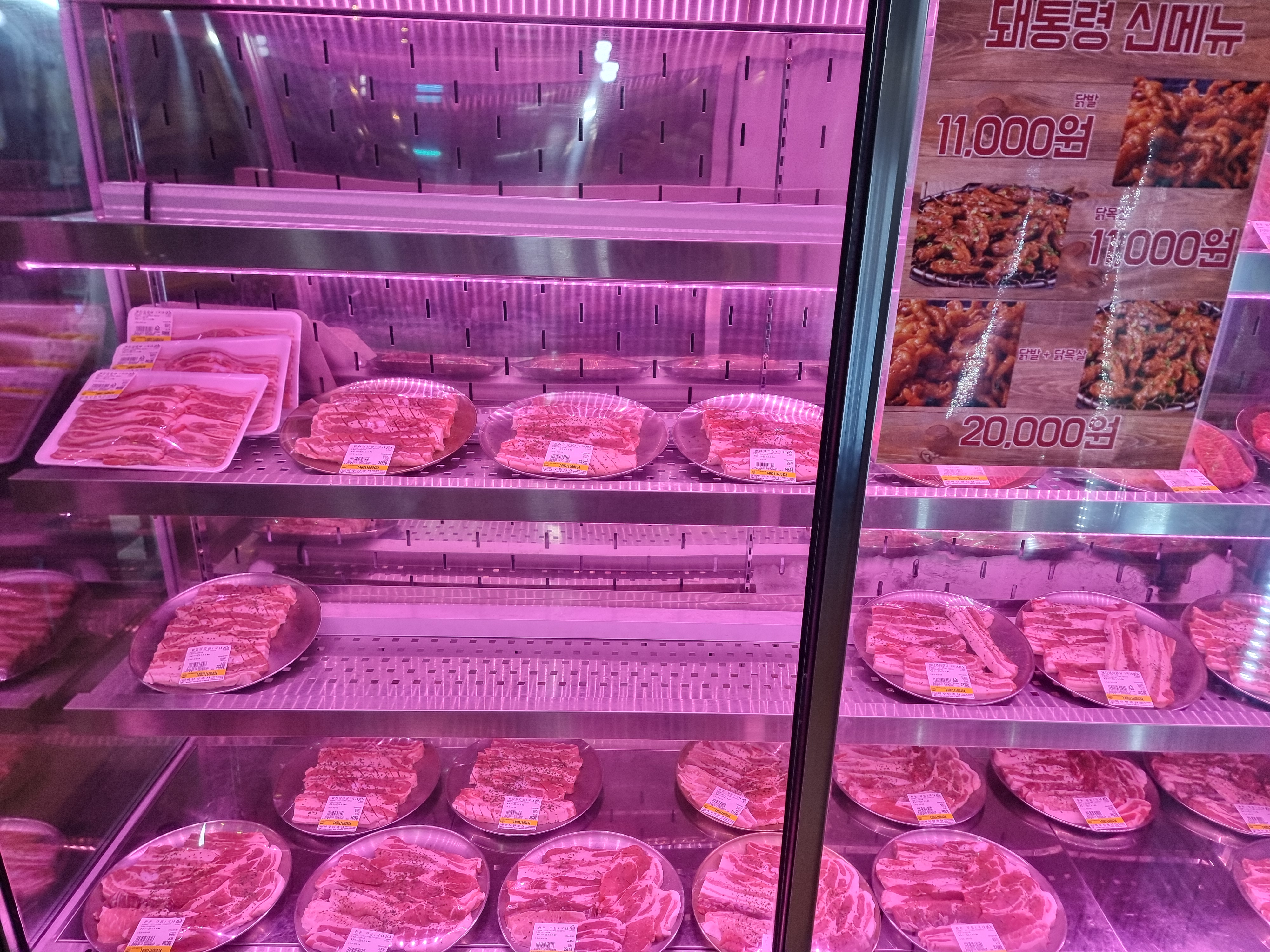 평일이라 사람들이 많이 없었지만 이미 몆  테이블에서 식사를 끝마친 직후에 들어갔다. 식당안에 들어오면 정육점에서만 볼법한 냉장고가 있었고, 이안에는 한돈과 한우가 정갈하게 놓여져 있었다.