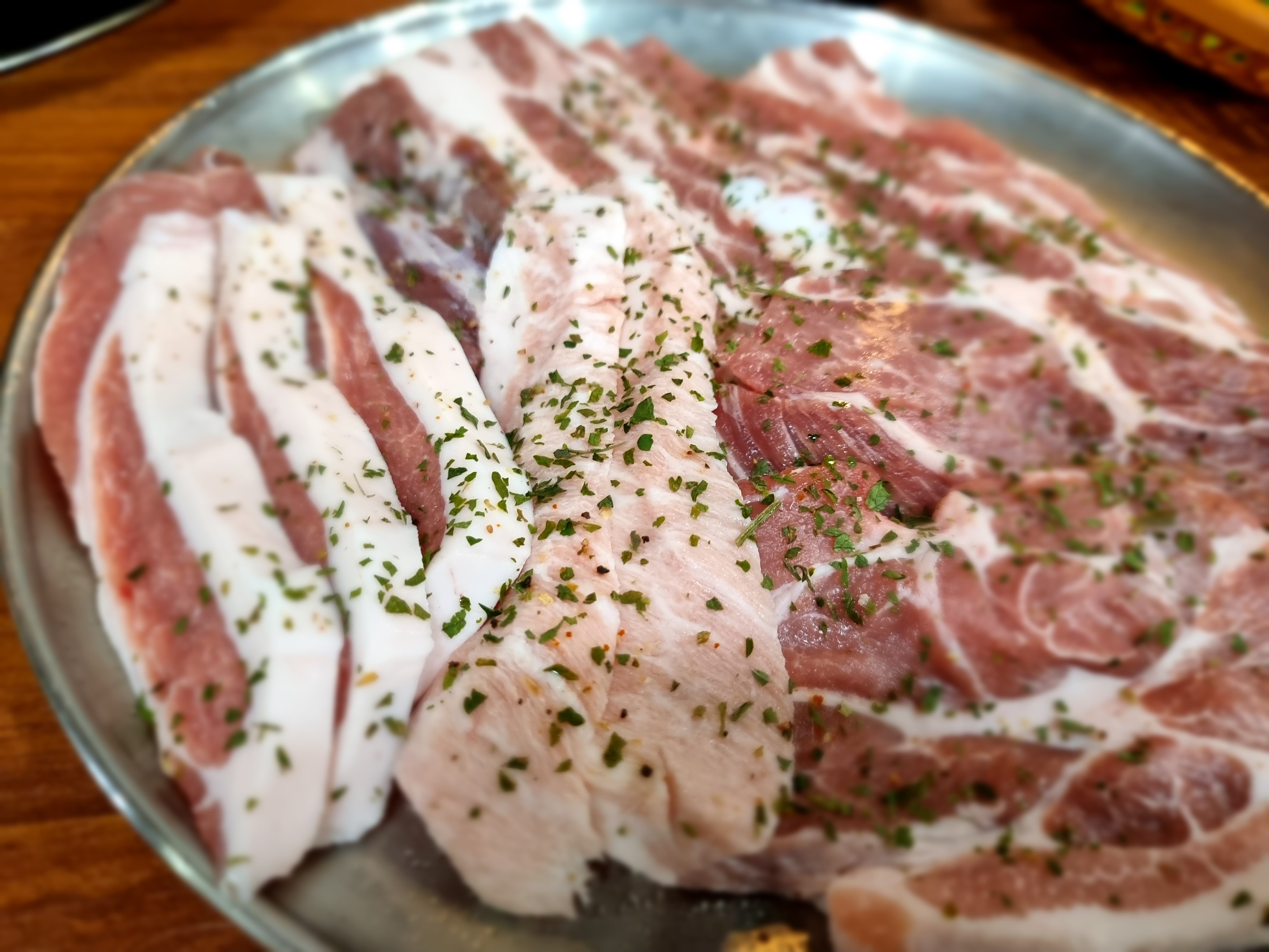 보통 고기를 굽게되면 기름이나왔는데, 운좋게 목살이 많은 접시를 먹게되서기름이 많이 없이 담백하게 먹을수 있었다.