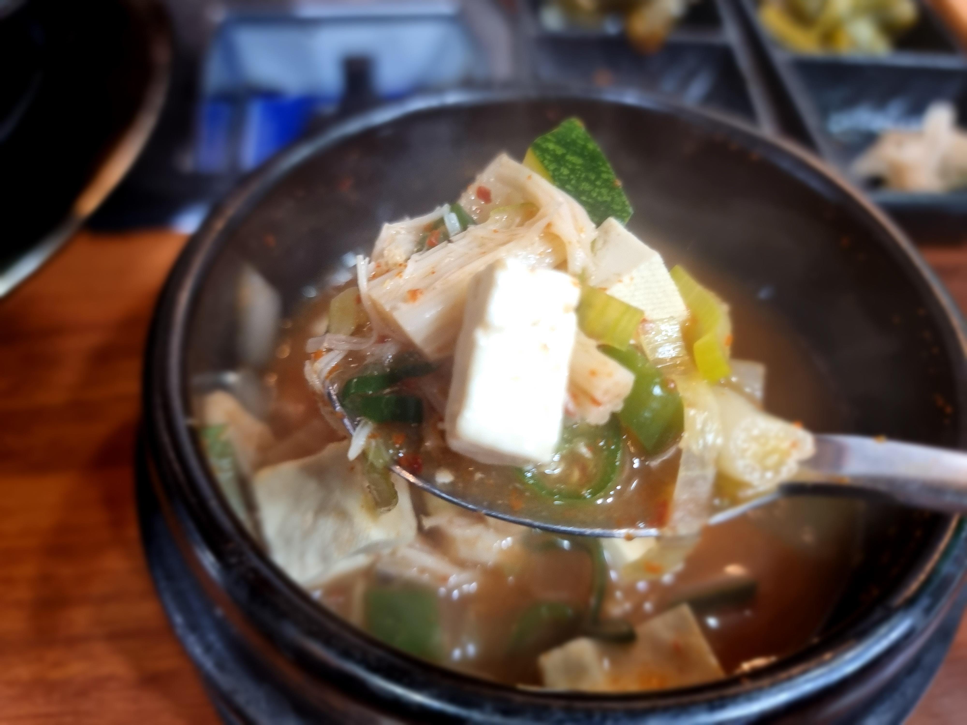 이후 된짱찌개도 주문해서 먹었는데, 고기와 같이 먹기에 편했다.