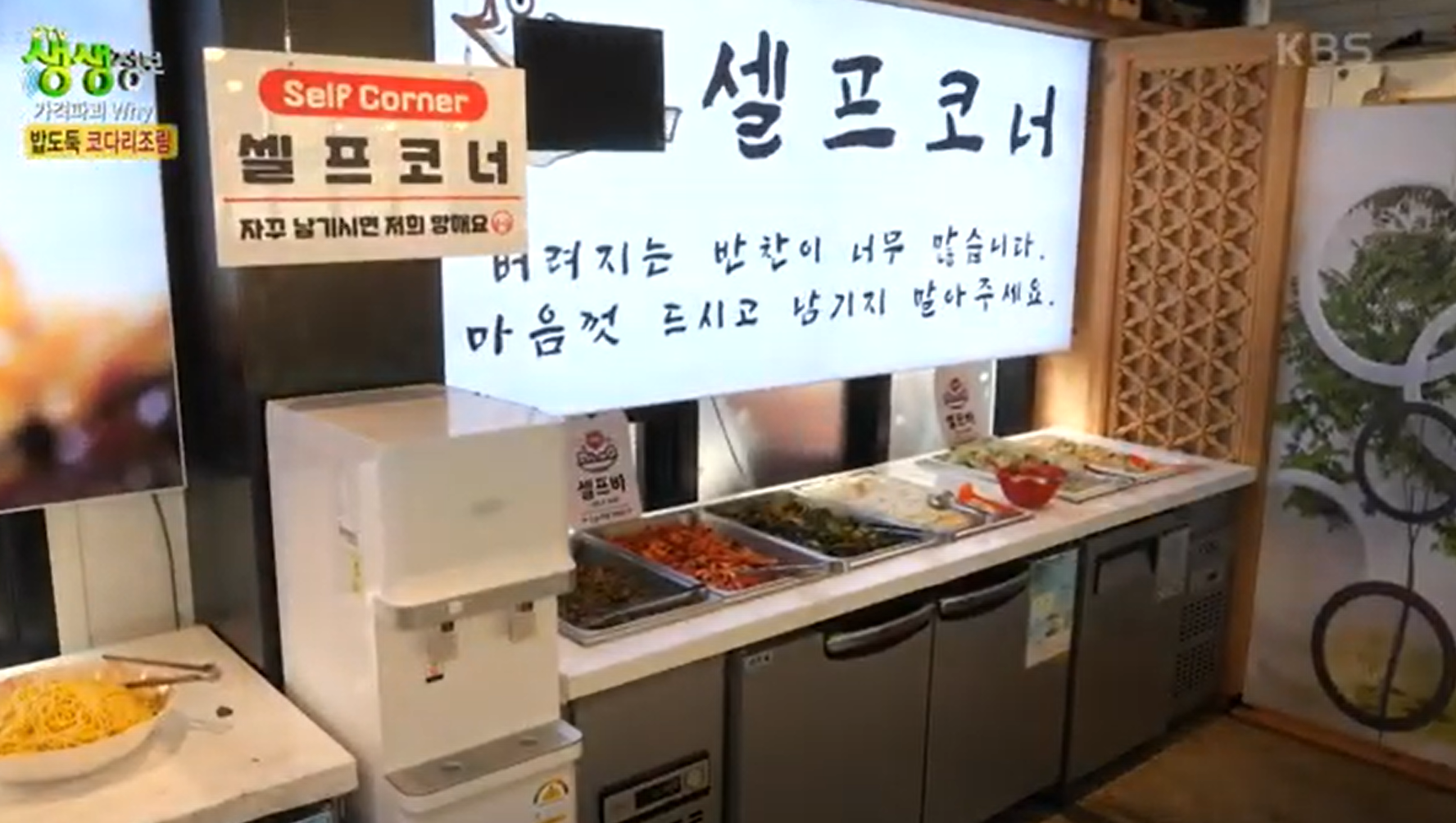 이 집의 또 다른 매력은 셀프바로 제공되는 푸짐한 반찬들입니다. 코다리 조림과 함께 나오는 반찬들이 정말 다양하고, 손님들이 원하는 만큼 자유롭게 가져갈 수 있습니다. 짜장, 떡볶이, 샐러드, 고슬고슬한 밥과 국까지, 한 끼 식사로 정말 푸짐하고 만족스러운 구성이죠.