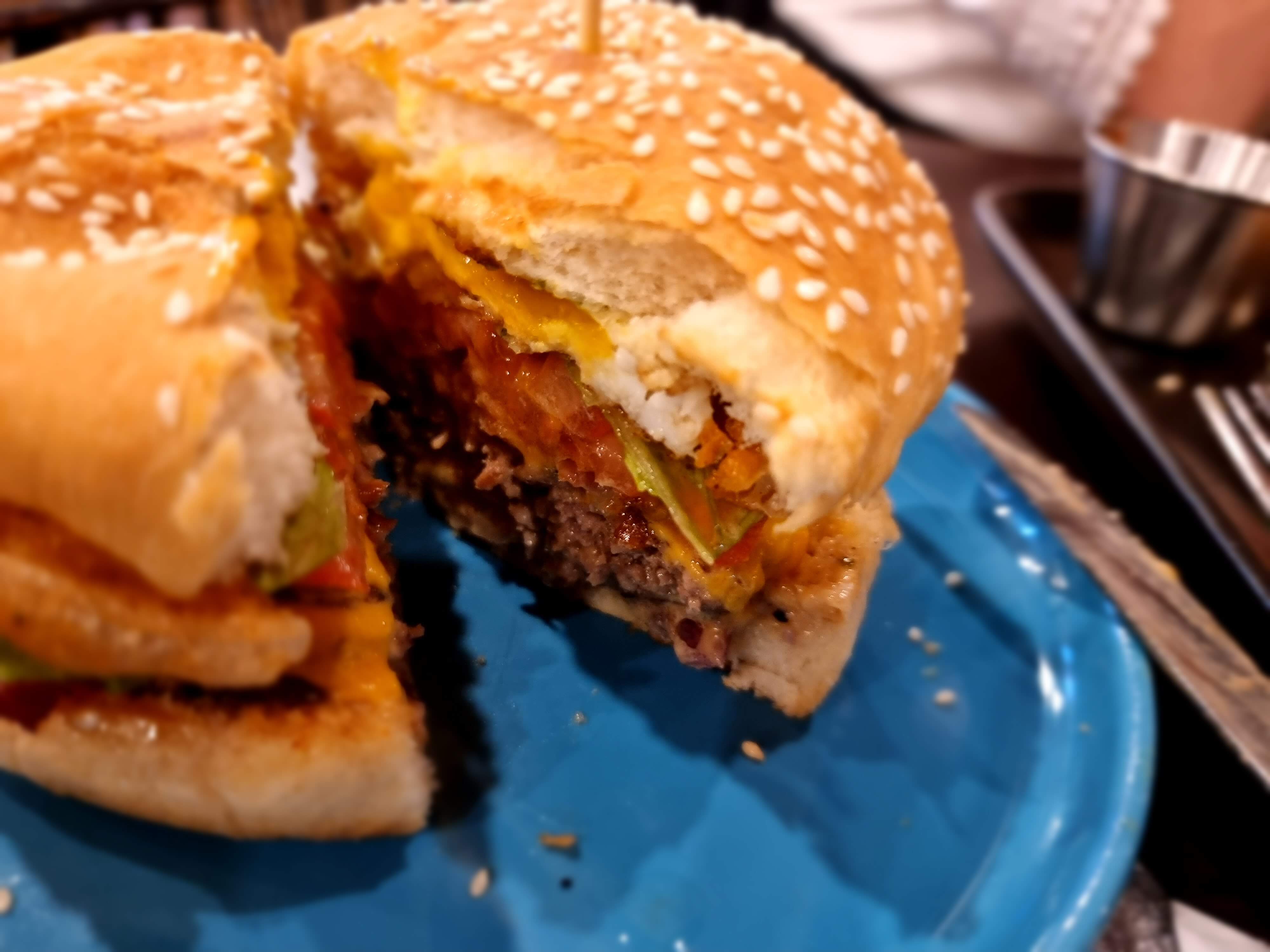 햄버거의 단면은 보이는 바와 같다. 패티와 토마토 베이컨에 반숙 노른자를 묻혀서 만들었다. 안 먹어보면 후회할 것 같은 햄버거였다. 햄버거가 퍽퍽했다면 HAMBROS의 Eggsplosion bugger는 패티의 육즙과 같이 반숙달걀노른자와 함께 먹는 식감이 부드러웠다. 이 느낌과 식감이 우리가 먹는 햄버거의 맛이 다른 이유다. 마지막으로 크기. 크기가 필자가 먹는 햄버거의 2배 정도이니, 비싸도 비싼 게 아닌 것 같았다.