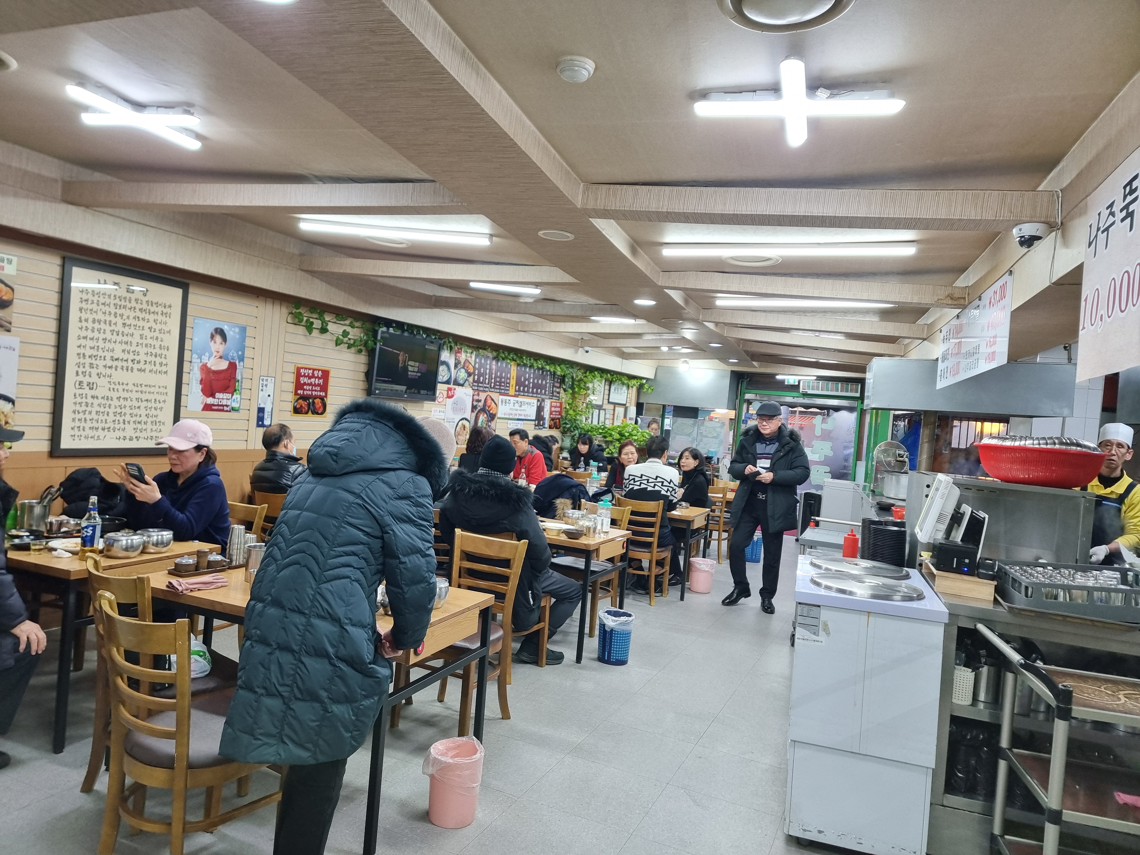 저녁때가 되니 사람들이 한 둘 차기 시작했는데, 메인 홀은 손님들로 북적였다. 사장님이 메인홀이 다 찼다며 안쪽 홀로 안내해 주셨다. 안쪽도 메인홀의 절반되는 크기이지만 메인홀 만큼 손님들이 앉을 수 있는 크기의 홀이었다. 단골 손님들도 많았고 대부분이 곰탕을 주문한 식탁들이 눈에 많이 들어왔다. 삼삼오오 퇴근하고 모인 사람들과 주변 단골들로 인하여 일부 식탁에서는 약주를 드시는 손님들도 눈에 보였다.