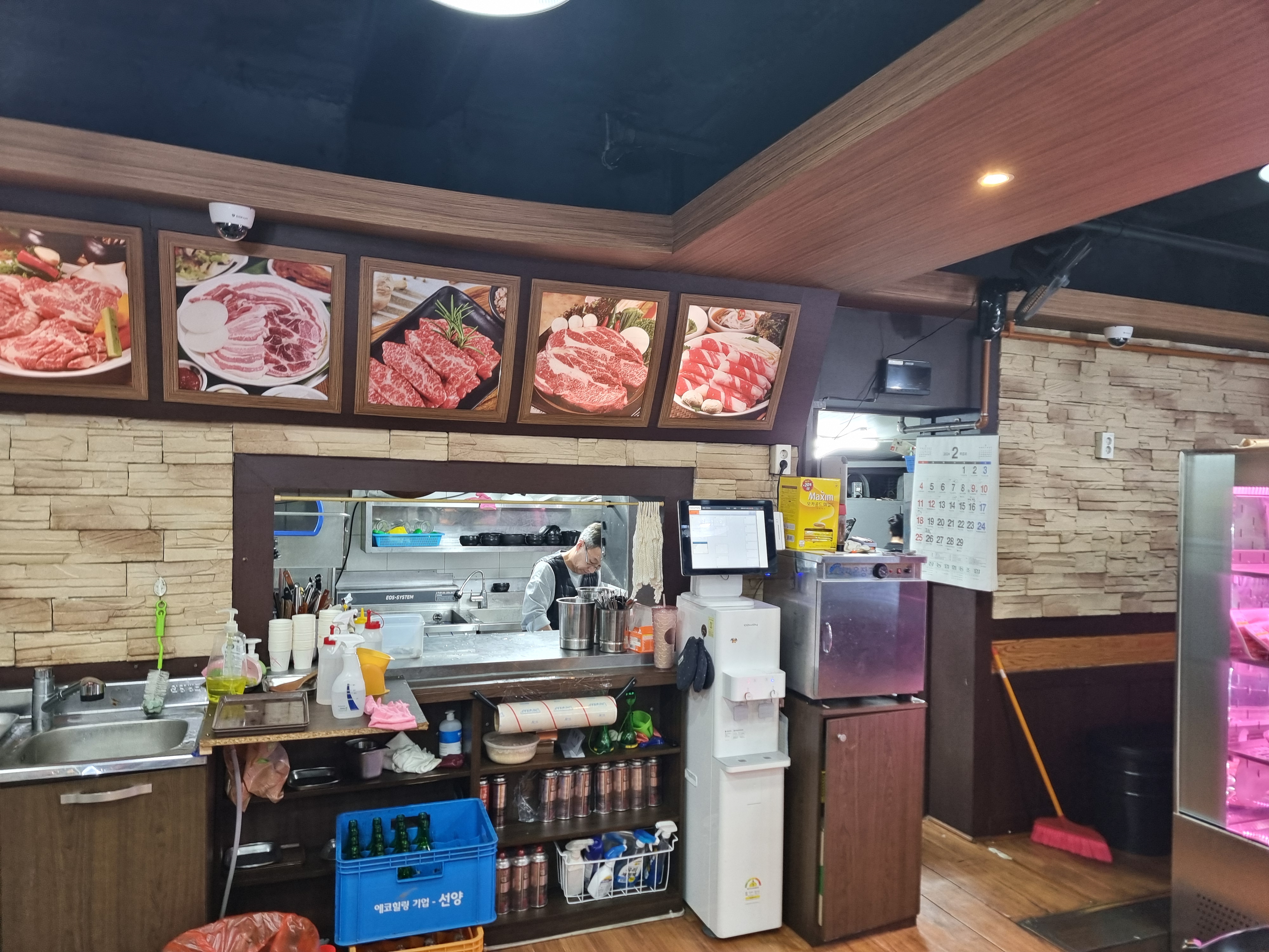 평일이라 사람들이 많이 없었지만 이미 몆 테이블에서 식사를 끝마친 직후에 들어갔다. 식당안에 들어오면 정육점에서만 볼법한 냉장고가 있었고, 이안에는 한돈과 한우가 정갈하게 놓여져 있었다.