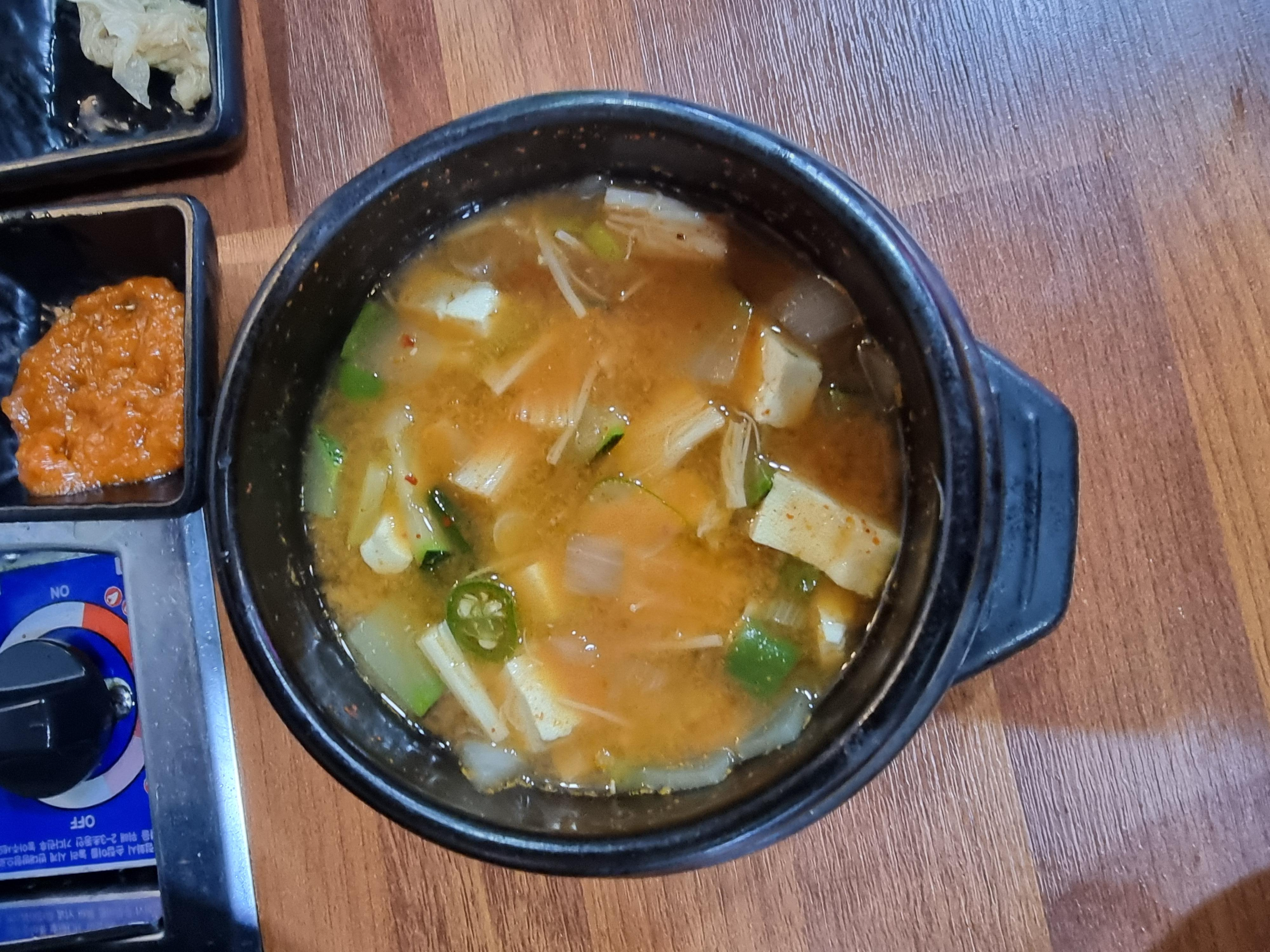 이후 된짱찌개도 주문해서 먹었는데, 고기와 같이 먹기에 편했다.